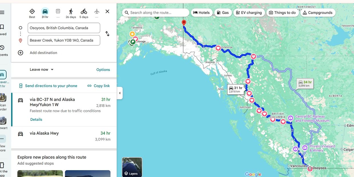 The ride north took me through Fraser Canyon. One word: AMAZING. I’ve ridden in multiple countries, and this stretch easily ranks in my top three roads—worldwide. Every corner opened up into another cathedral of stone and sky. Plenty of semi-trucks kept the pace moderate, but that just gave me more time to soak it in. The road was in excellent condition all the way through 100 Mile House.